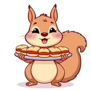 Brighten your space with this whimsical poster of a cheerful squirrel serving tiny delights. A perfect addition for any kitchen or party zone.